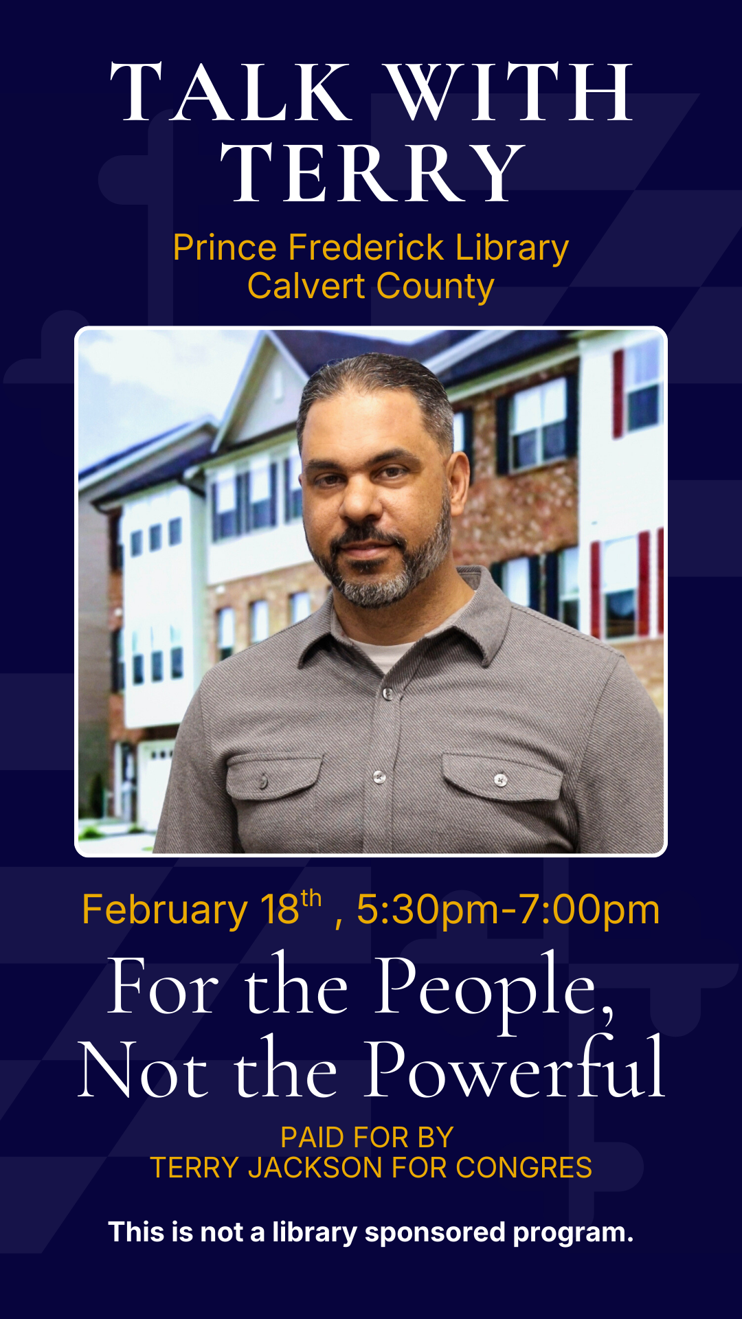 “Drive Thru the Five” Community Listening Session — PRINCE FREDERICK, MD Wednesday, February 18, 2026 5:30 PM 7:00 PM Prince Frederick Library 850 Costley Way Prince Frederick, MD, 20678 United States (map) Google Calendar ICS